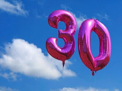 | 5221 | pink helium balloons on blue cloudy sky, celebrating the age thirty with number balloons, birthday background | iStock_Andreas Haeuslbetz | ||
