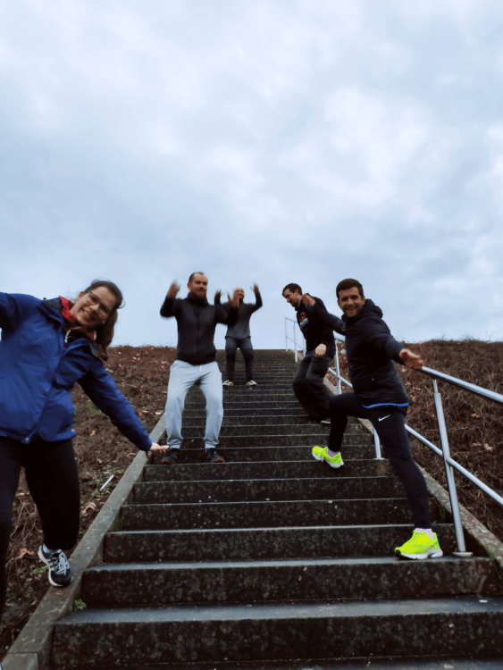 Mutige und sport­li­che Teilnehmer*innen haben mit Trainer Lukas Schapp (pots​dam​-in​-bewe​gung​.de) gezeigt: Ein biss­chen Regen hält nicht auf!