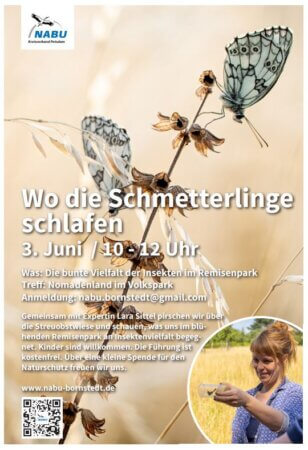 All dies schauen wir uns bei dem Rundgang genauer an. Kinder sind sehr willkommen. Die Führung ist kostenfrei. Über eine kleine Spende für Naturschutzprojekte freut sich der NABU Bornstedt.